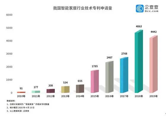 潛力巨大的“藍海”市場早已廠商云集,智能家居行業(yè)技術專利申請量迅速攀升。企查查數(shù)據(jù)顯示,我國智能家居相關專利申請總量早已破萬,2015年開始我國智能家居行業(yè)技術邁入快速發(fā)展期,2018年達到巔峰,數(shù)量達4863件,較2017年同比增長了76%,2019年專利申請數(shù)稍減。由此可見,智能家居市場競爭較為激烈,各路玩家步伐急促。