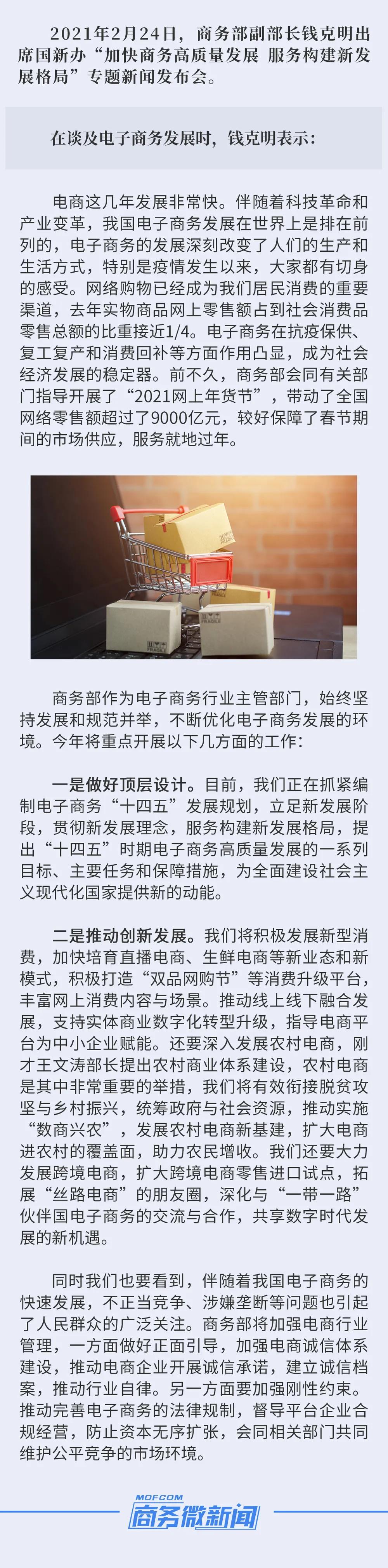 商務(wù)部副部長錢克明:2021實施“數(shù)商興農(nóng)”,拓展“絲路電商”
